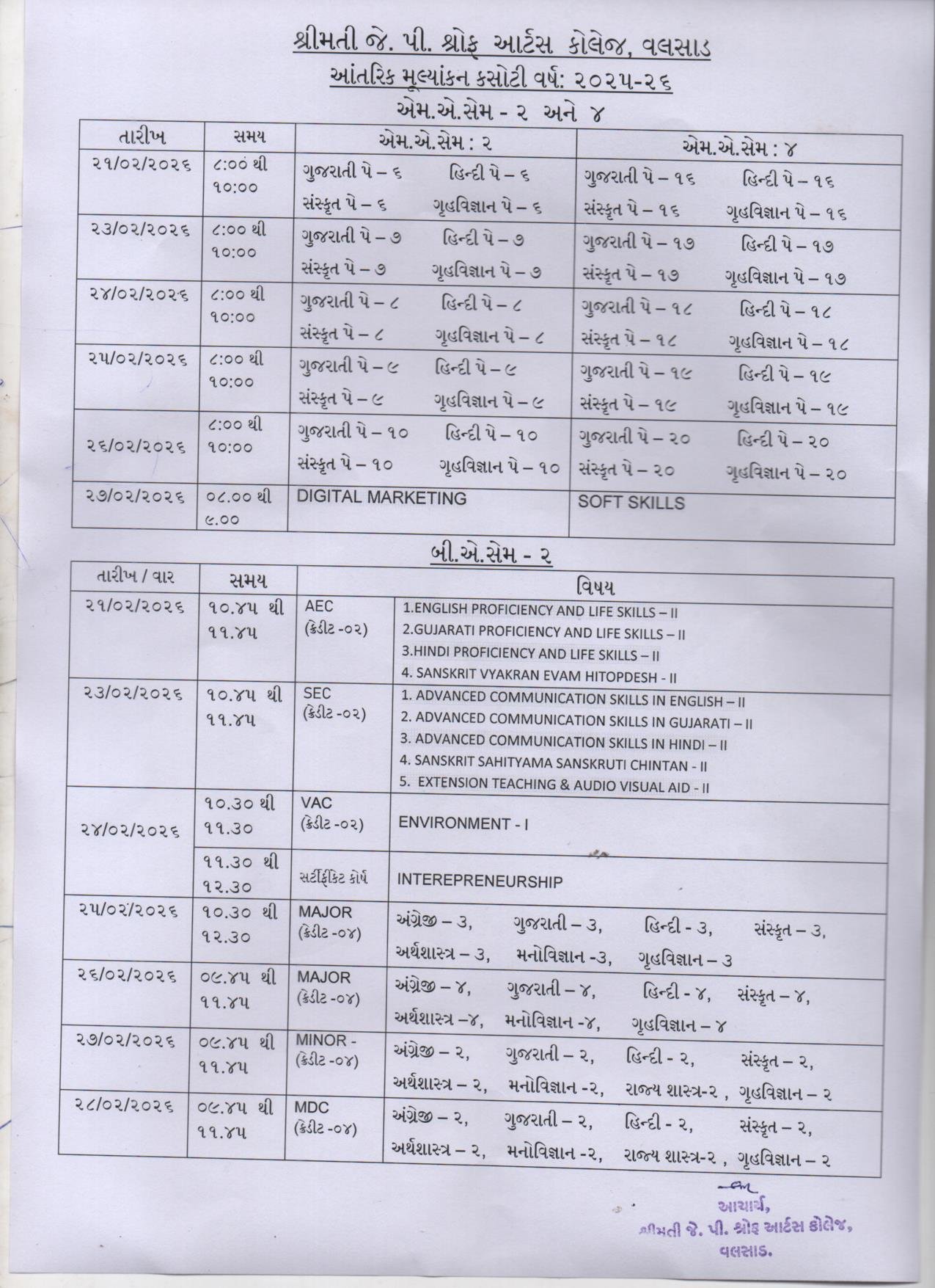 College Internal Exam Time Table B.A. Sem 2 & M.A.Sem 2 & 4 Year -2025-26 Schollarship Notice | 6 months ago