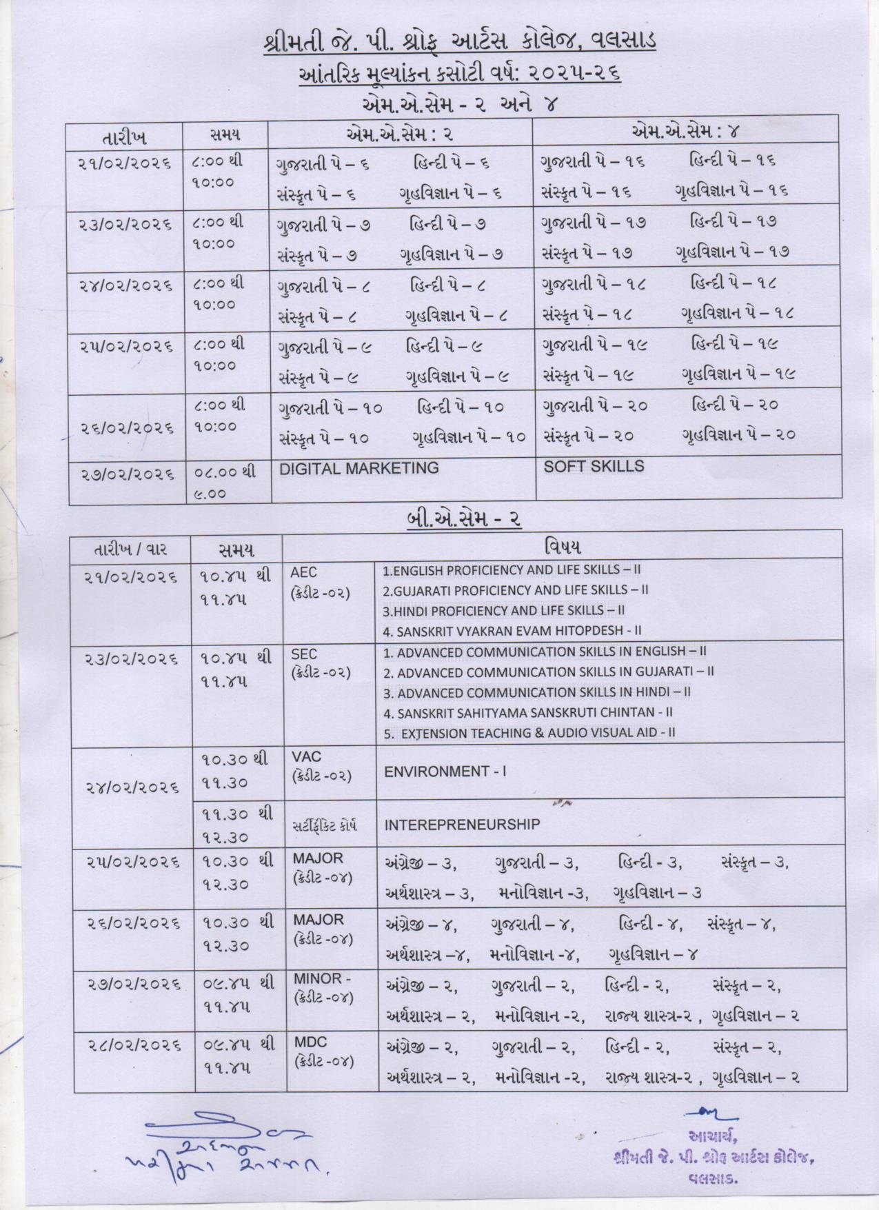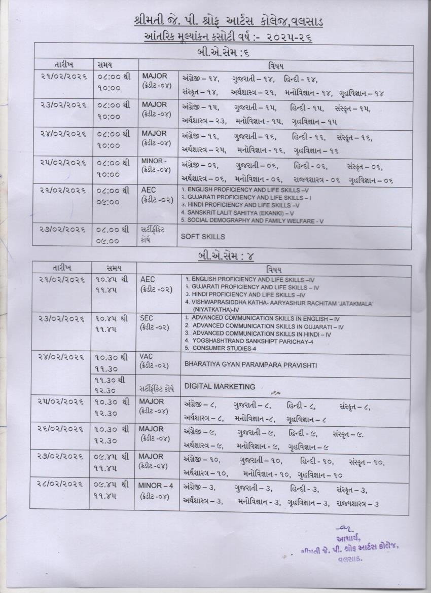 College Internal Exam Time Table B.A. Sem 2 & M.A.Sem 2 & 4 Year -2025-26 Schollarship Notice | 7 months ago