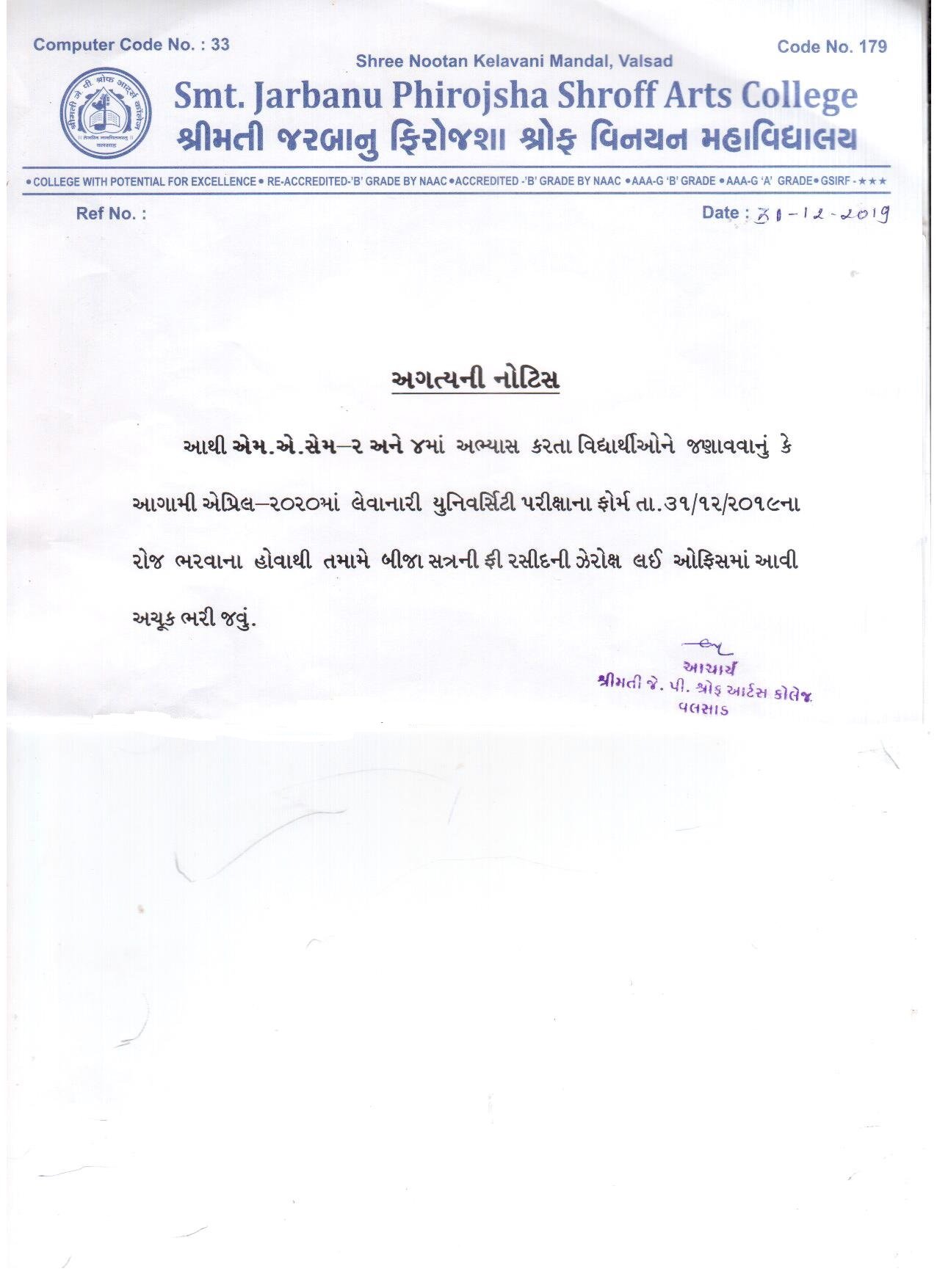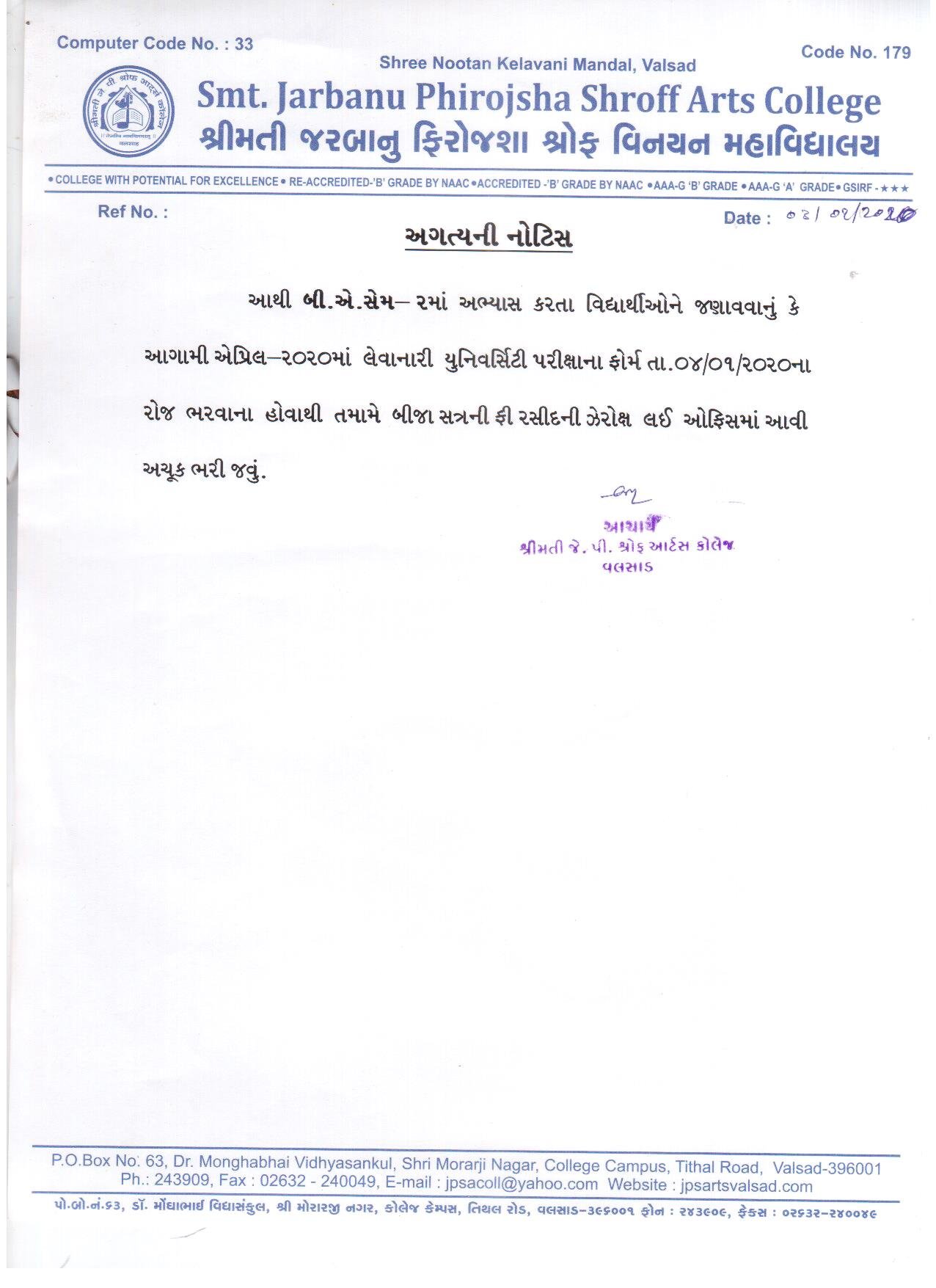 | University Exam form Notice | 02/01/2020 | View | |