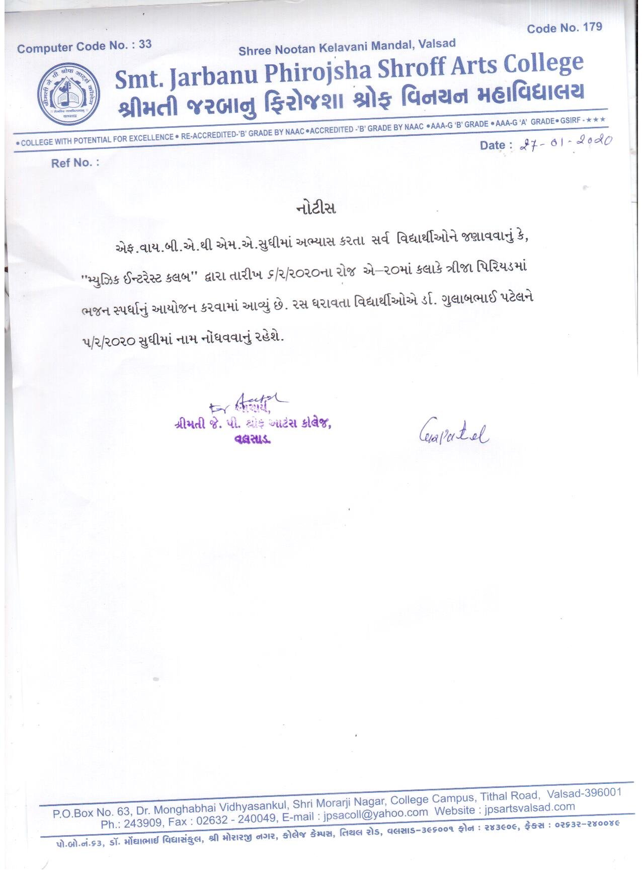 | Geet Spardha Notice | 27/01/2020 | View | |