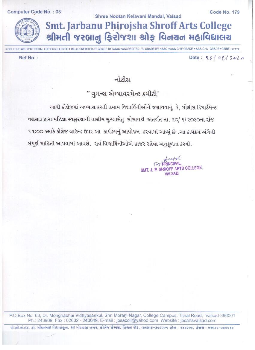 | Mahila Swasurksha Notice | 19/01/2020 | View | |