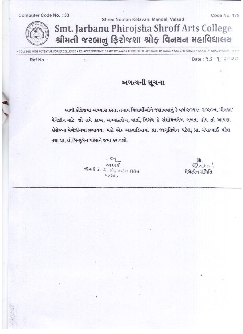 | Shailja Magazine Notice | 17/01/2020 | View | |