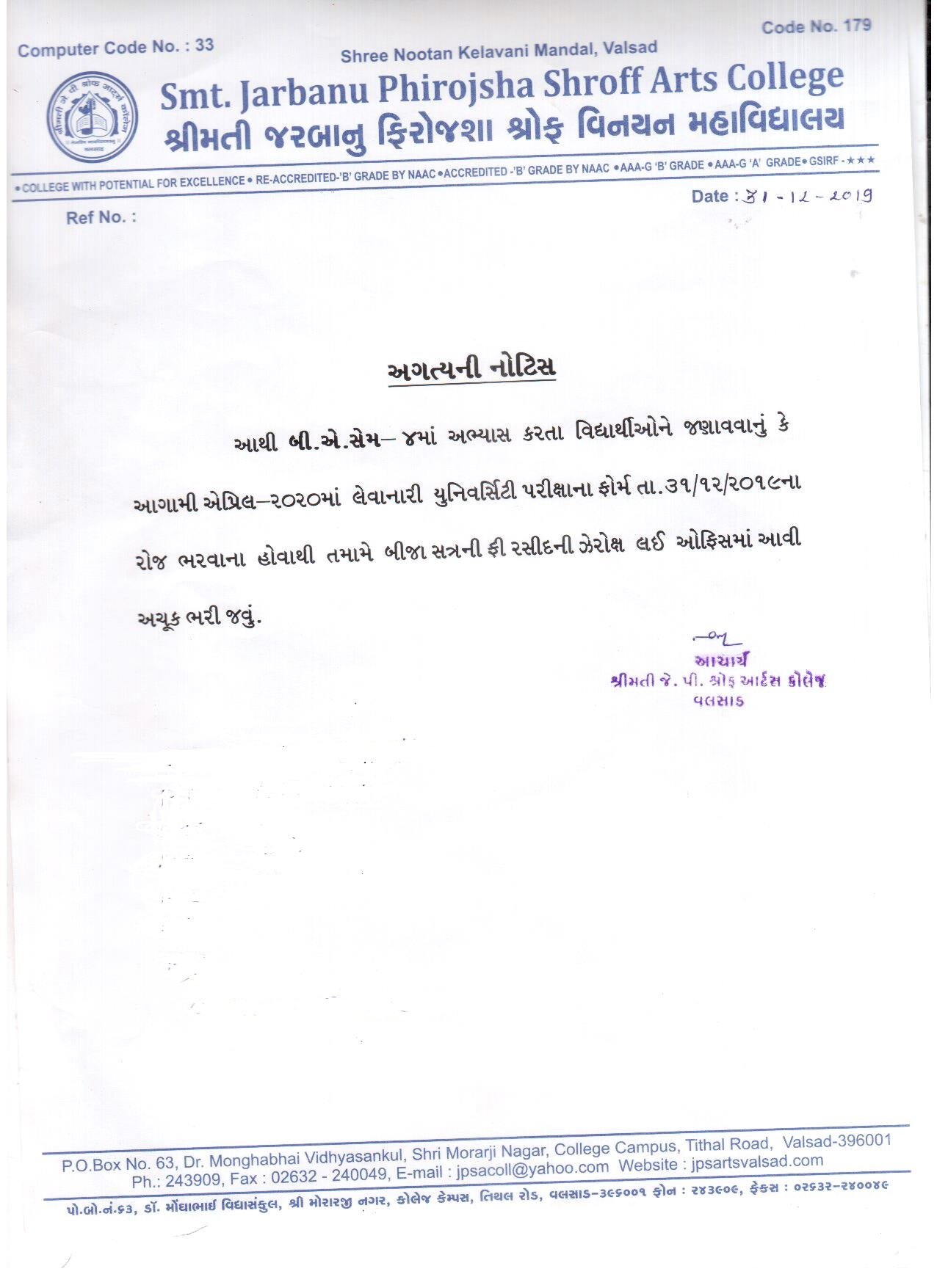 | University Exam form Notice B.A.Sem.4 | 31/12/2019 | View | |
