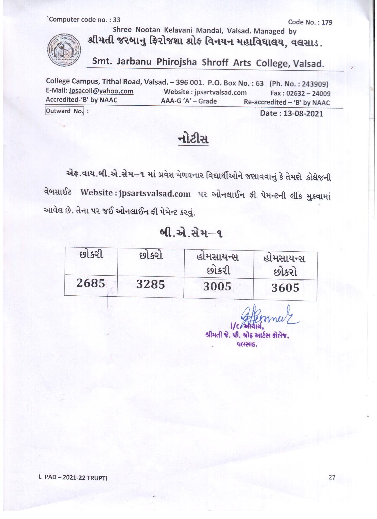 એફ.વાય.બી.એ.સેમ.૧ પ્રવેશ ફી નોટીશ એફ.વાય.બી.એ.સેમ.૧ પ્રવેશ ફી નોટીશ 13/08/2021 View