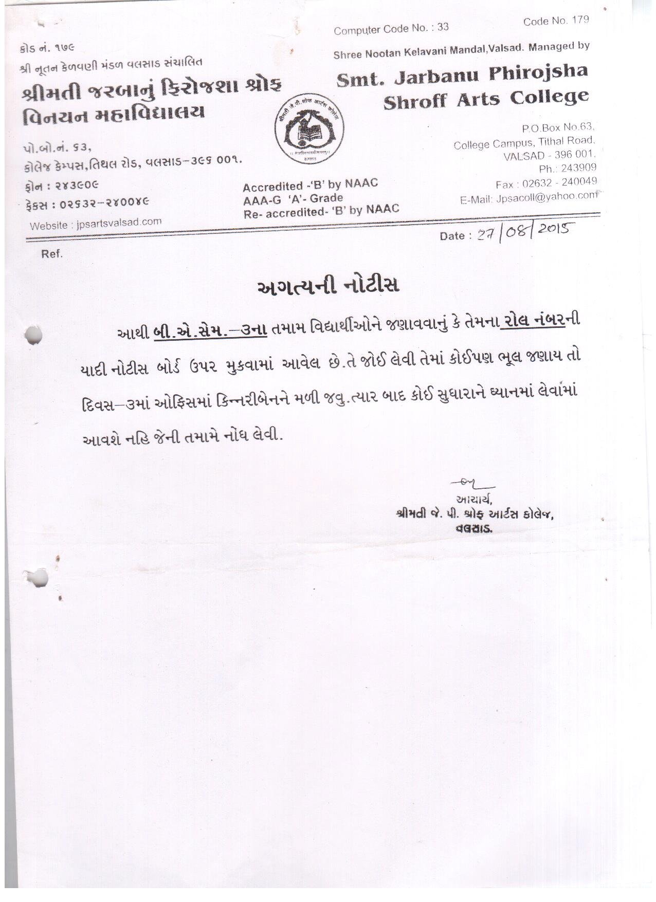 | B.A.Sem. 3 Roll No. Notice | 27/08/2015 | View | |