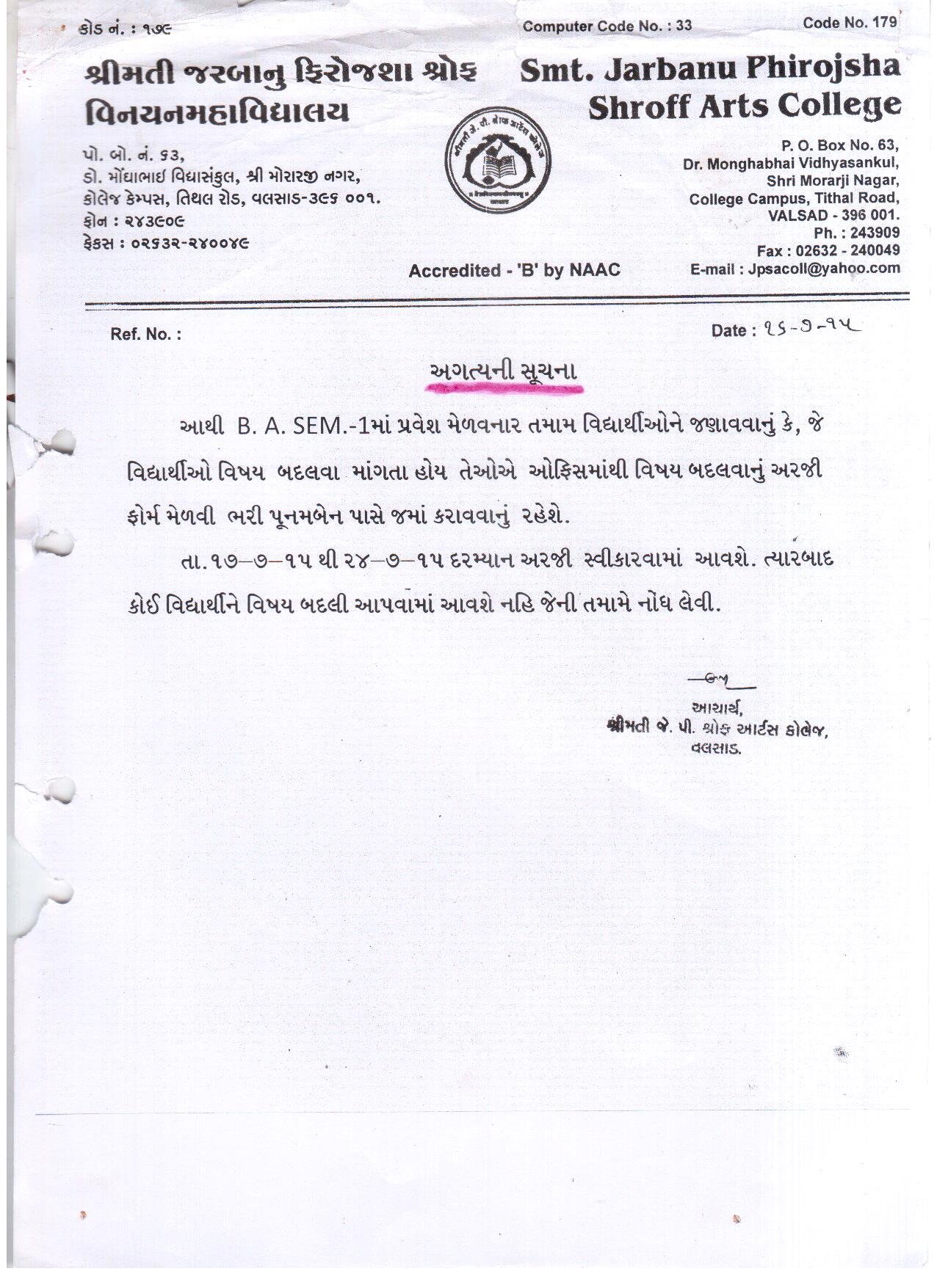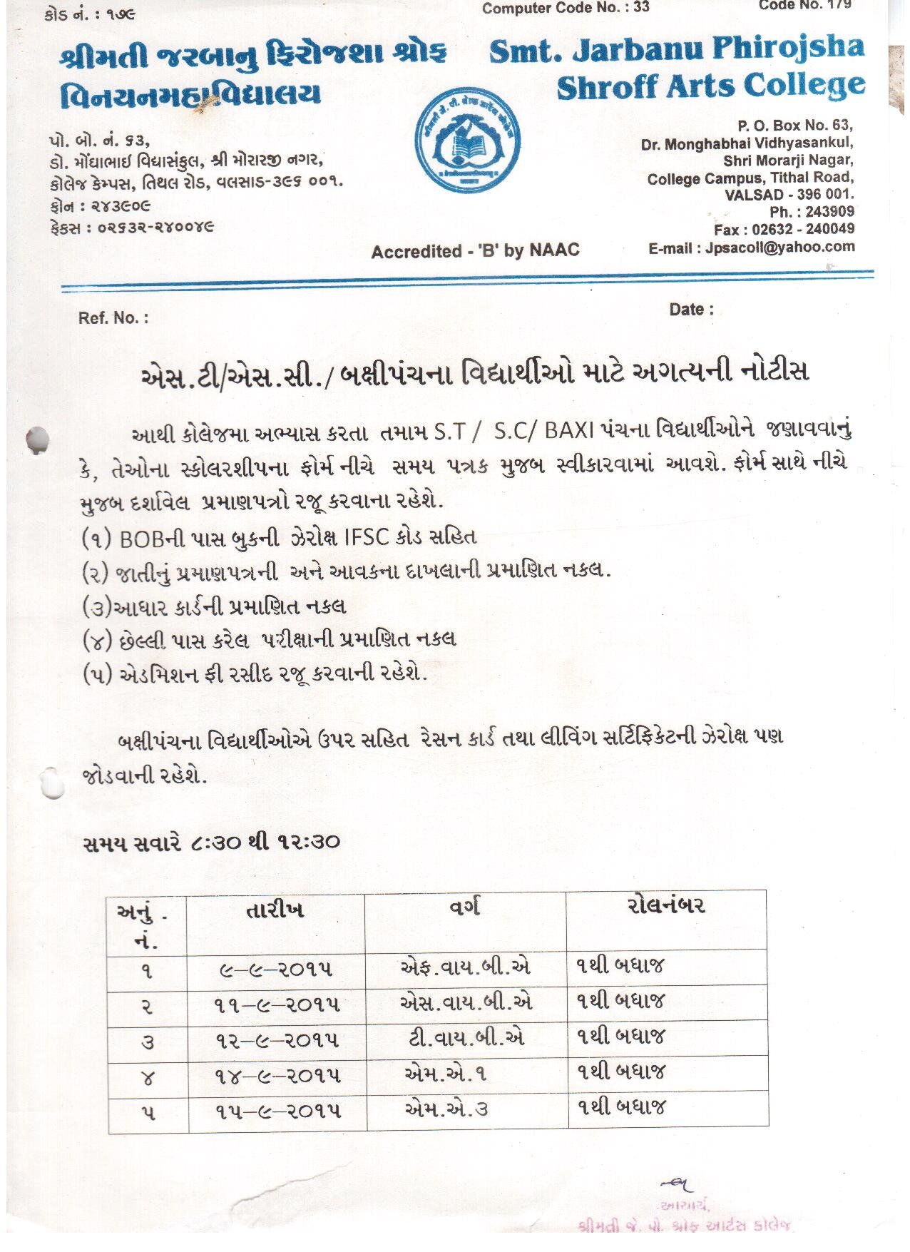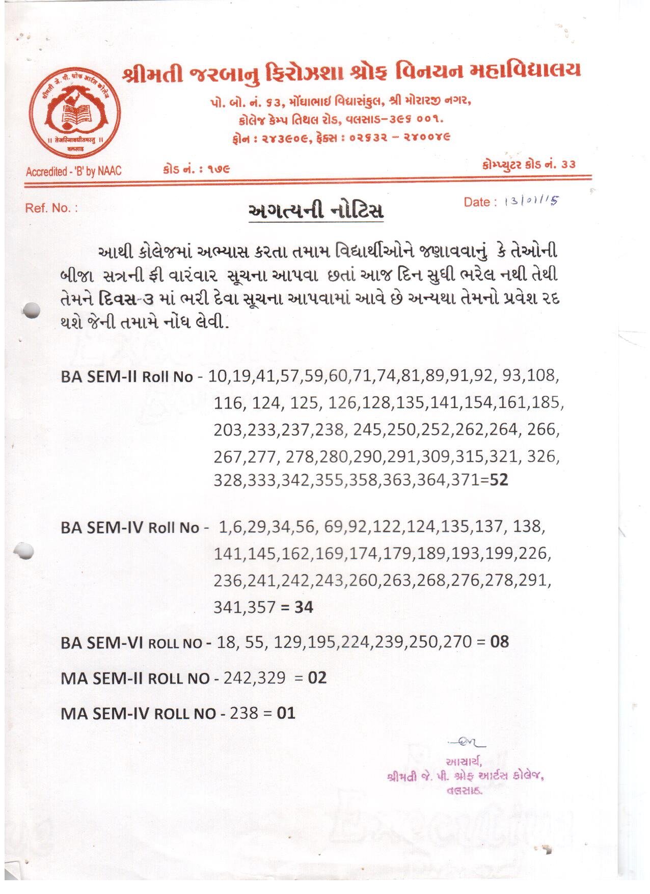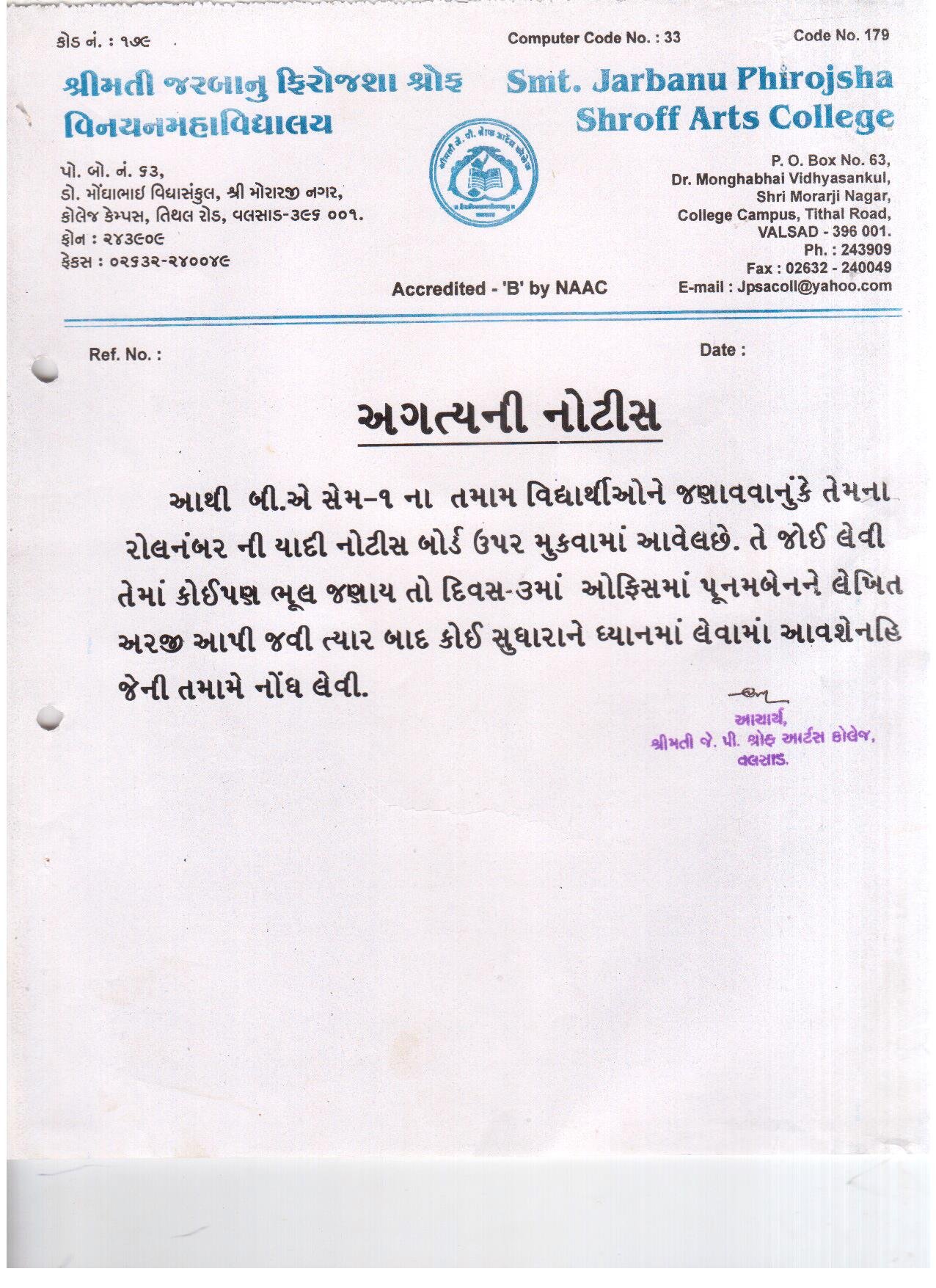 | B.A.Sem. 1 Roll No. Notice | 05/08/2015 | View | |