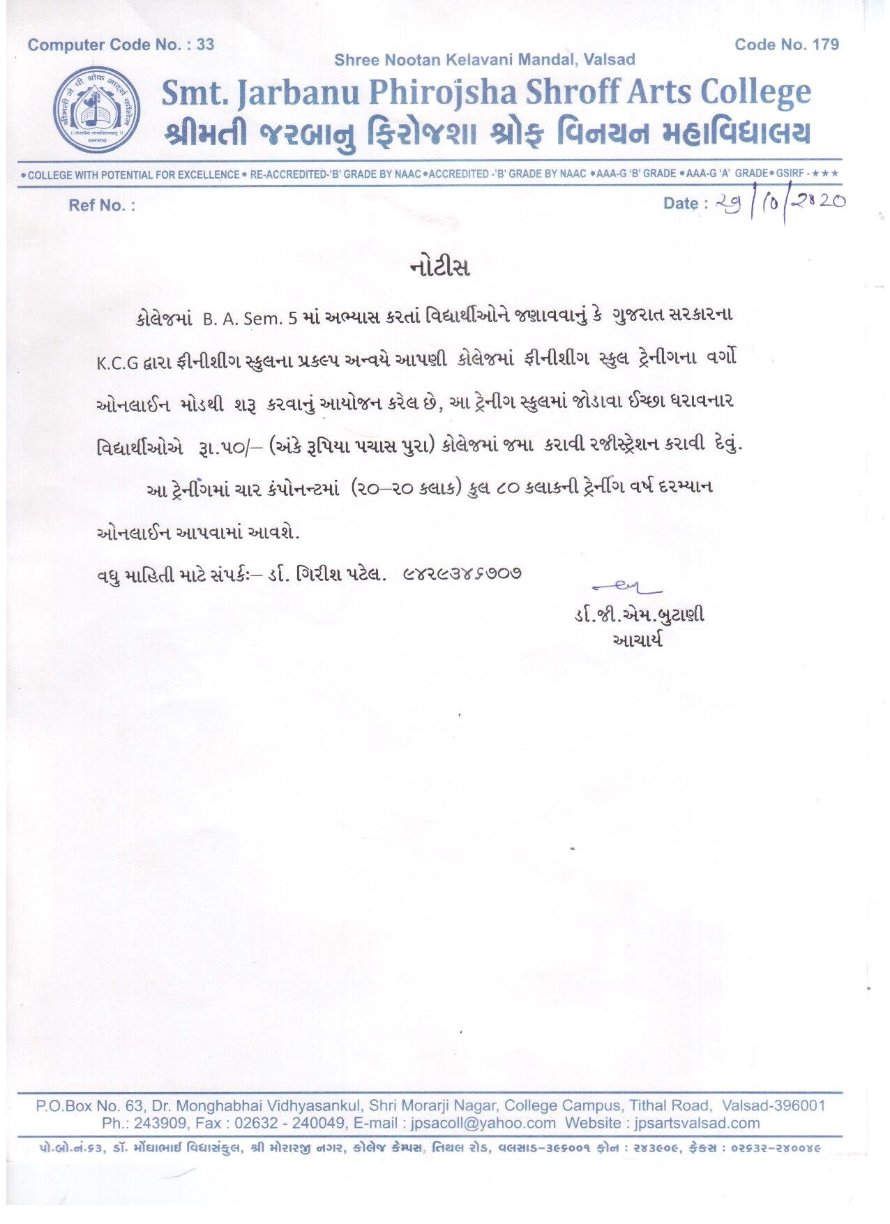 | Finishing School Notice B.A.Sem.5 |