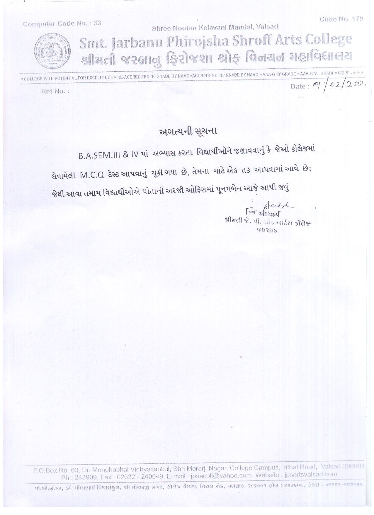 | M.C.Q Exam Notice |