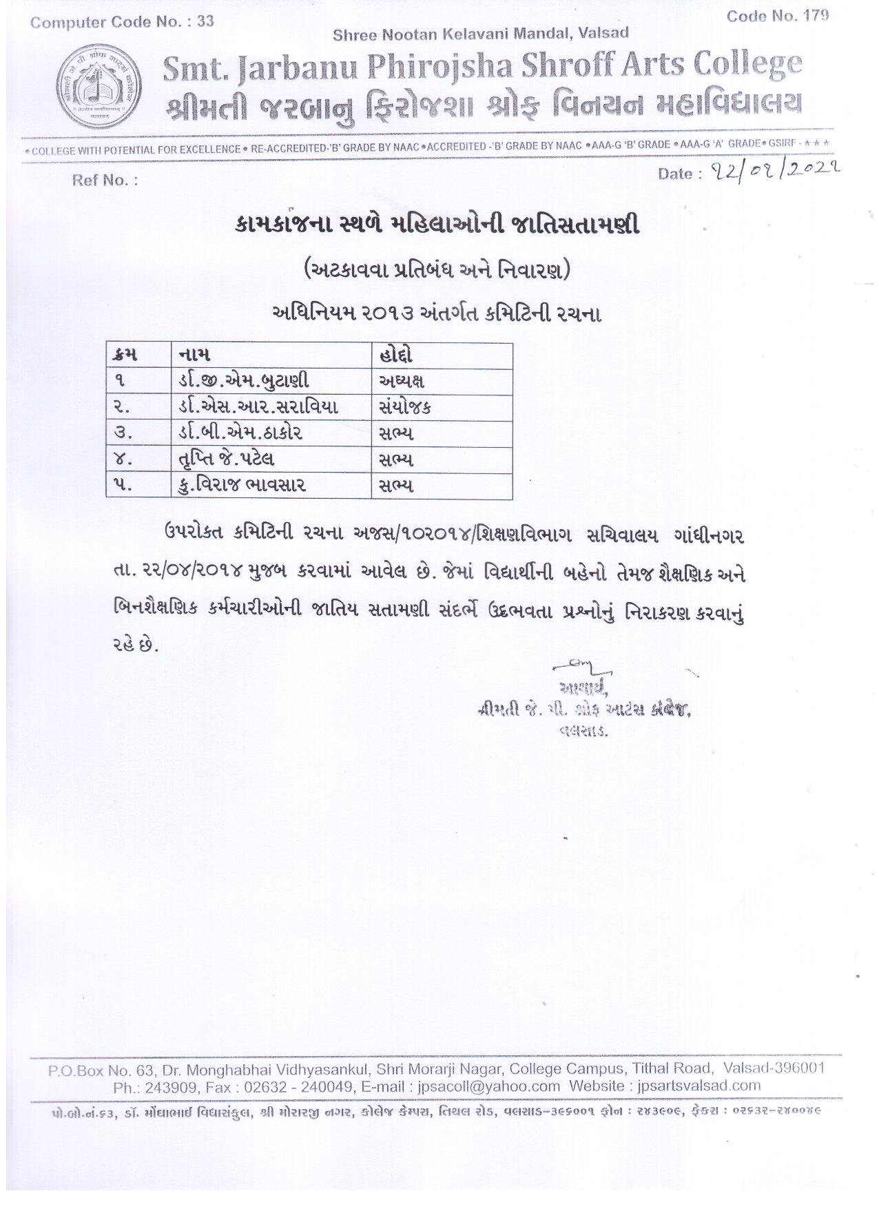 | કામકાજના સ્થળે મહિલાઓની જાતિસતામણીની કમિટી |