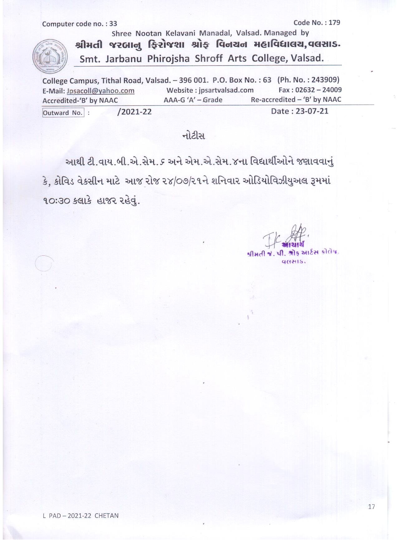 | કૉવિડ વેકસિન નોટીસ |