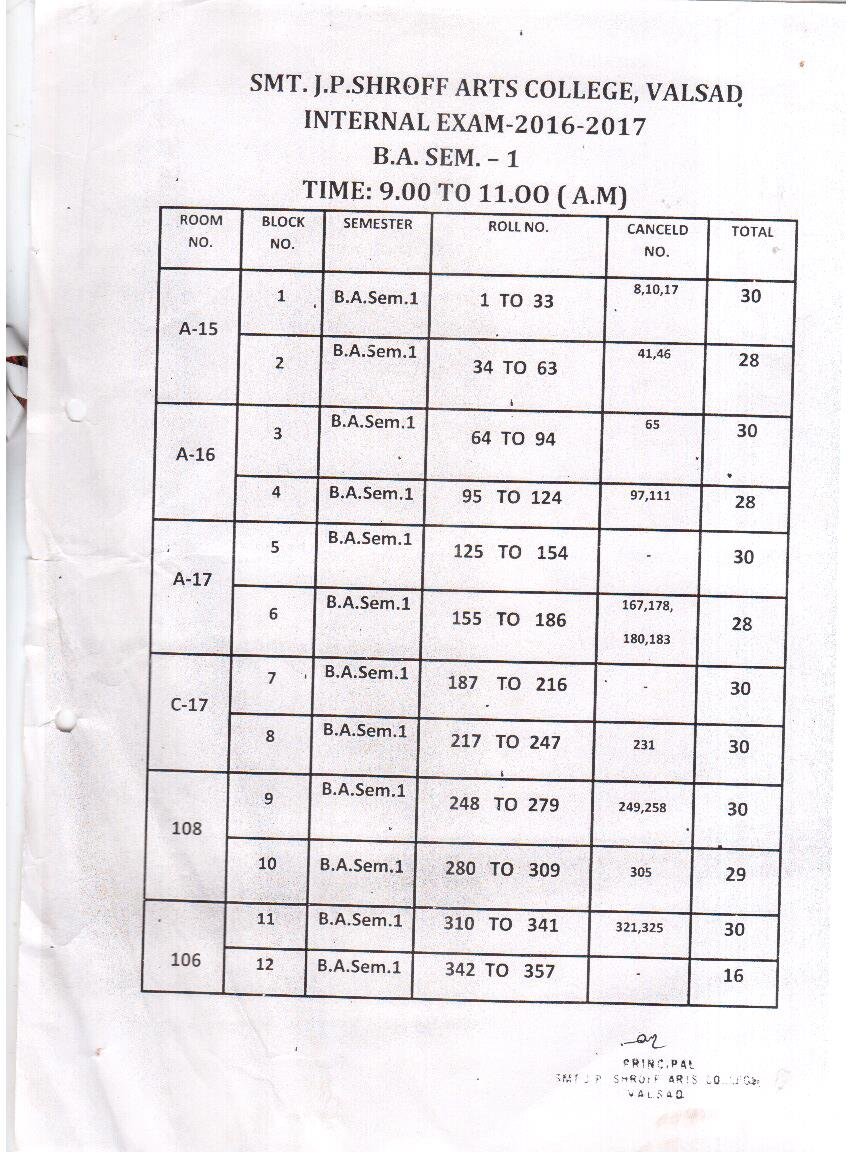 | B.A.Sem 1 Internal Exam Time Table |