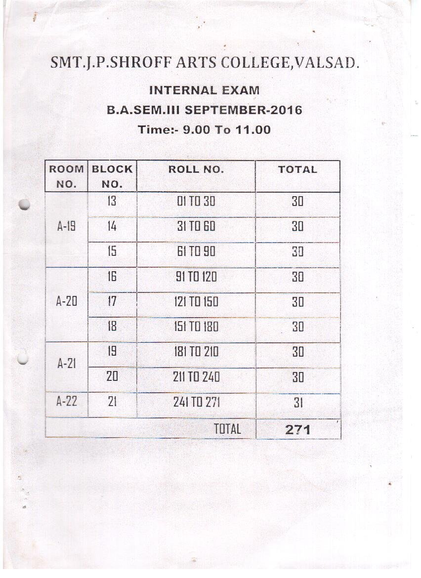 | B.A.Sem 3 Internal Exam Time Table |