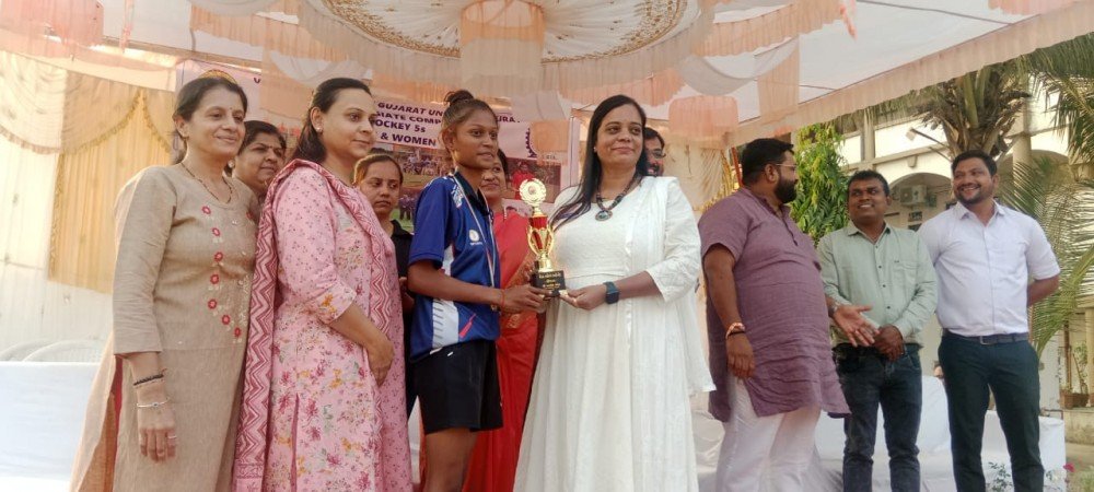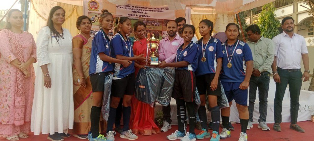 Veer Narmada by South Gujarat University. Surat Inter -college hockey women competition was held at Patel Commerce College Bilimora. The final match was played between Shri. J.P Shroff Arts College, Valsad and AV Patel Commerce College, Bilimora in the University Final match, in which Shri. J.P Shroff Arts College, Valsad were declared the winner. This, Arts College became the first champion in which Rathore Sanjana (Captain), Halpati Nehangi (wise-Captain), Patel Hatasvi (Goal Kipper), Kalant Kareena, Dhapsa Monika Performed beautiful and Best Defence Sanjay Rathod, Best Goal Halpati Nehgi.