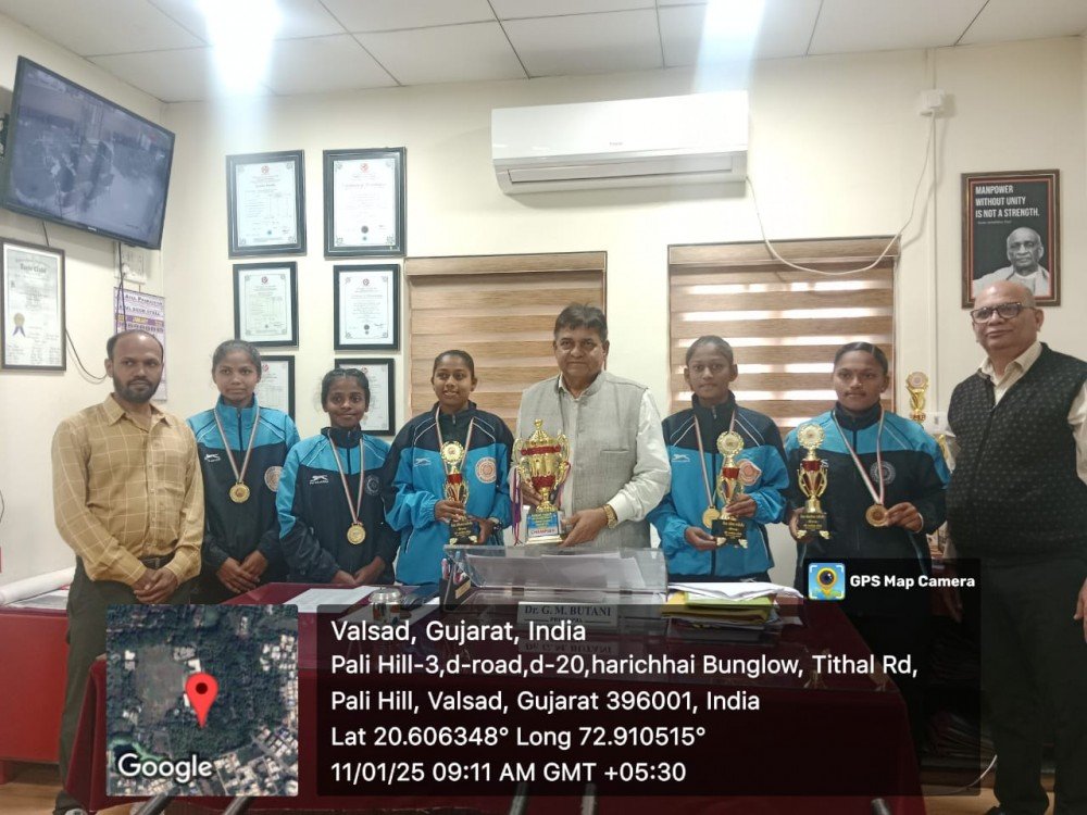 This, two students (1) Rathod Sanjana (1) Halpati Nehgi were selected in the team of Veer Narmad South Gujarat University .The winner team was given the college's Principal Dr.G.M.BUTANI and Physical Education Lecturer Prof. Congratulations to Dr.Indrajit Patel and the college family.