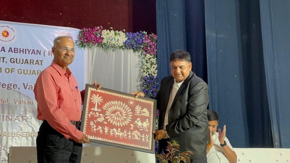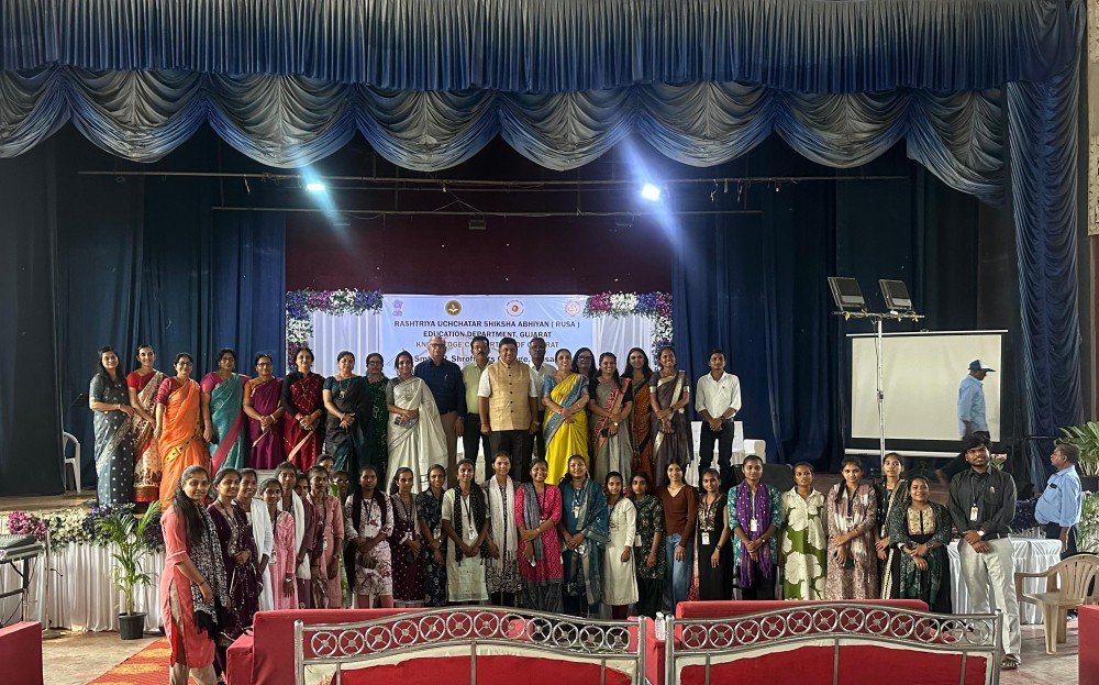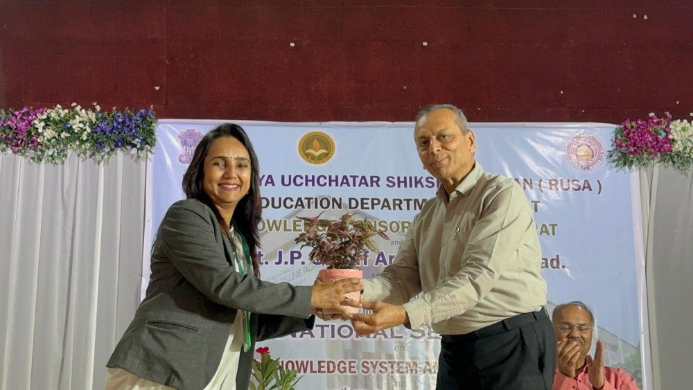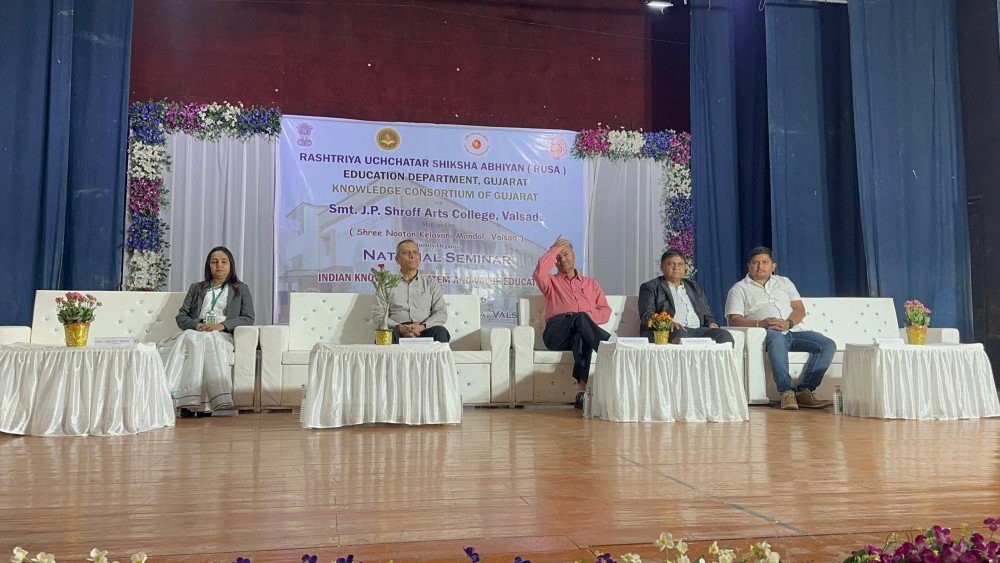 The IQAC of Smt. J. P. Shroff Arts College, in collaboration with the RUSA, Gujarat Education Department and Knowledge Consortium of Gujarat (KCG), successfully organized a National Seminar on Indian Knowledge System and Value Education in hybrid mode on 17 February 2026 at Sanskar Kendra, Valsad.