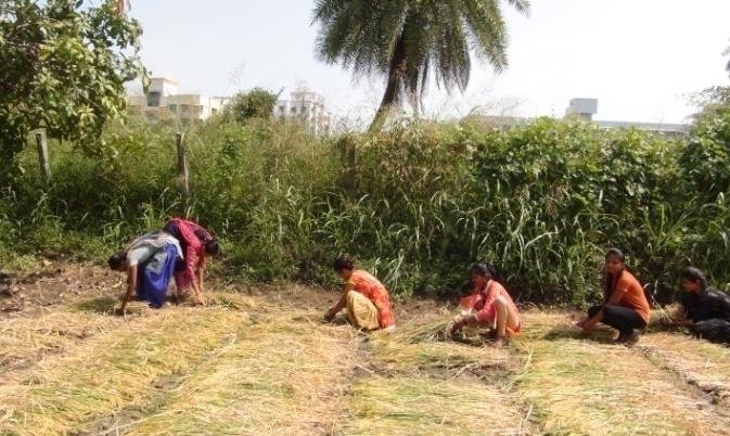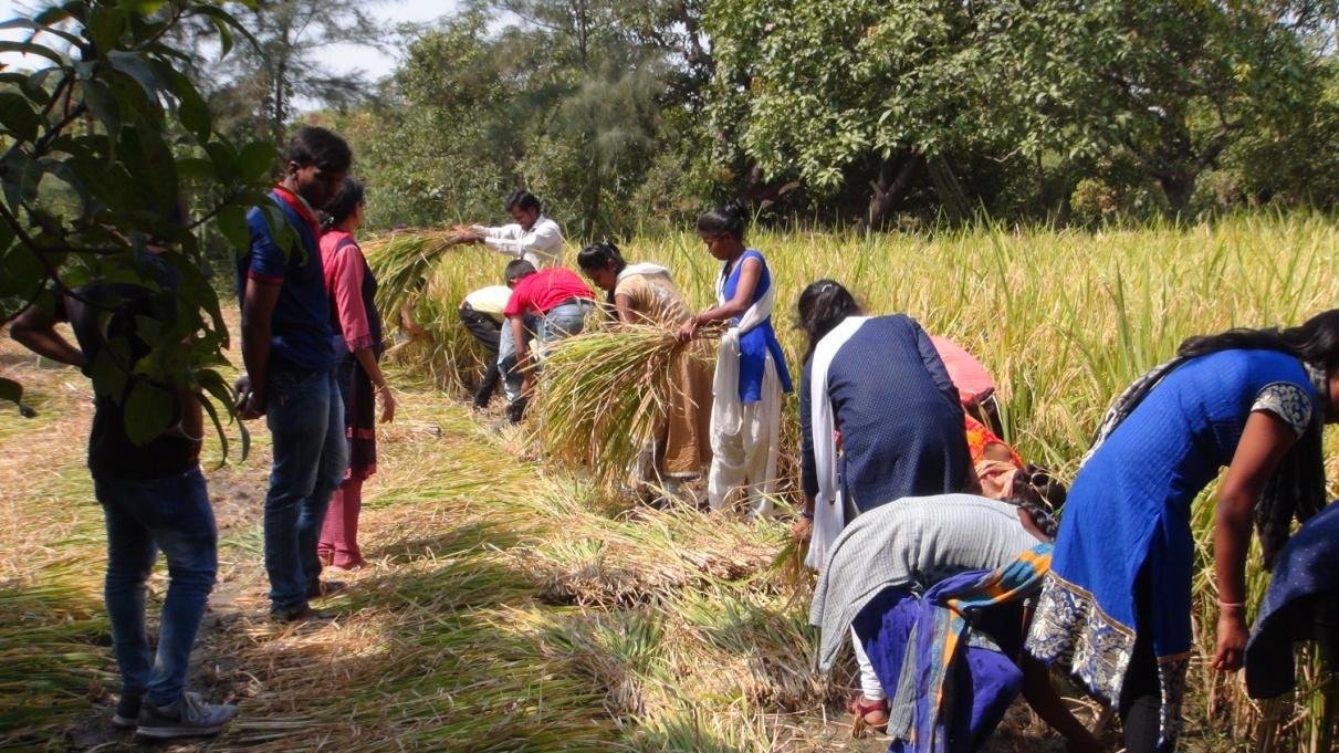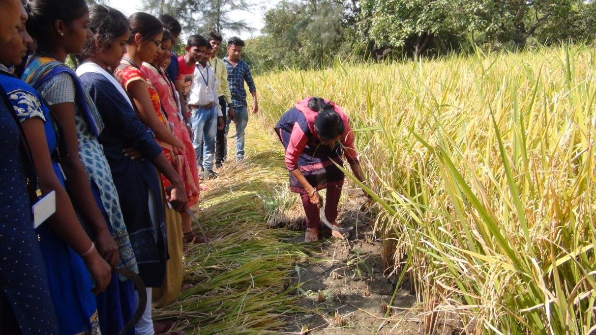 visit to a paddy farm for demonstrate the method of harvesting Paddy